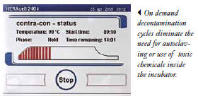 雖然消毒循環(huán)不能消除對常規(guī)清潔培養(yǎng)箱的需要,但它可以消除對單獨高壓滅菌內(nèi)部部件的需要,并消除“駐留”污染的風(fēng)險。