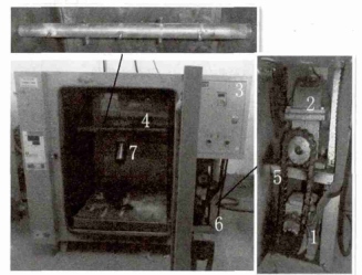 普通恒溫鼓風干燥箱在安裝電動機、蝸輪減速機、變頻器及主軸后,與配套的小型反應(yīng)釜結(jié)合,實現(xiàn)了在水熱合成過程中反應(yīng)釜內(nèi)部物料的動態(tài)反應(yīng),可以在很多實驗中替代動態(tài)水熱反應(yīng)釜用于動態(tài)水熱合成實驗。經(jīng)過本科生及研究生的多次使用后,發(fā)現(xiàn)改裝后的鼓風干燥箱與聚四氟乙烯內(nèi)襯和不銹鋼外襯組合反應(yīng)釜相配套使用,完全可以用于動態(tài)水熱合成實驗。相比較帶攪拌槳的動態(tài)反應(yīng)釜而言,該設(shè)備在同一時間可以進行不同原料配合比下的實驗,這樣節(jié)省了大量的實驗時間,使用時簡單方便,受到廣大師生的一致好評。由于實驗量較大,實驗室進行了第二個烘箱的改裝,改裝后的烘箱及結(jié)構(gòu)如圖 2 所示,基本改裝方法與**個相同。但