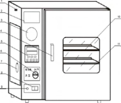6. 真空閥 7. 抽氣孔 8. 電源開關(guān) 9. 電源指示燈
