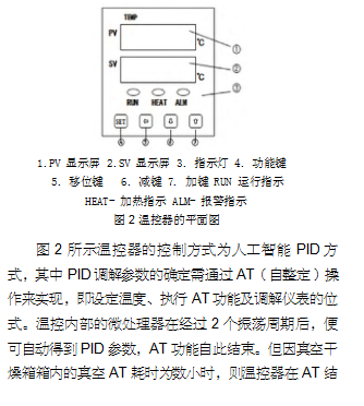 溫度失控在真空干燥箱使用中尤其常見,其表現(xiàn)形式有二:一是直接在接通電源和設(shè)定溫度后加溫,建議用萬用表來檢查真空干燥箱是否存在可控硅短路,如若可控硅短路受損,則可用同一型號的可控硅進(jìn)行替代修復(fù);二是在接通電源和設(shè)定溫度后,即使按下“開始”按鍵,真空干燥箱也不升溫,建議用萬用表來檢查其可控硅或熱電偶是否損壞,如若受損,則用同一型號的器件來進(jìn)行替代修復(fù)。一旦排除真空干燥箱溫度失控的原因不是上述所言,則可確定其溫控電路存在故障。針對這一問題,為了減少資金投入,建議選用G產(chǎn)優(yōu)質(zhì)的溫控器,同時注意如下事項(xiàng):一是不得隨意變動箱體的加熱電路結(jié)構(gòu)布局和傳感器溫度檢測部位;二是確認(rèn)溫控器電參數(shù)的匹配程度,以保證其負(fù)載能力、控溫范圍和精度與要求相符;三是盡量少改動溫控器與傳感器的幾何形狀和外型尺寸,建議采取如下方法:shou先,拆除與新裝溫控器不相干的器件,如前面板;其次,通過在前面板處開孔來固定新溫控器和傳感器探頭,并將傳感器的引線接在溫控器后側(cè)的接線端子上;**后,分別將箱體加熱爐絲的兩端用粗徑導(dǎo)線連在固態(tài)繼電器端子上和電源的一端上進(jìn)行調(diào)機(jī)。針對真空干燥箱溫控器的調(diào)機(jī),以圖 2 所示溫控器為例展開討論。